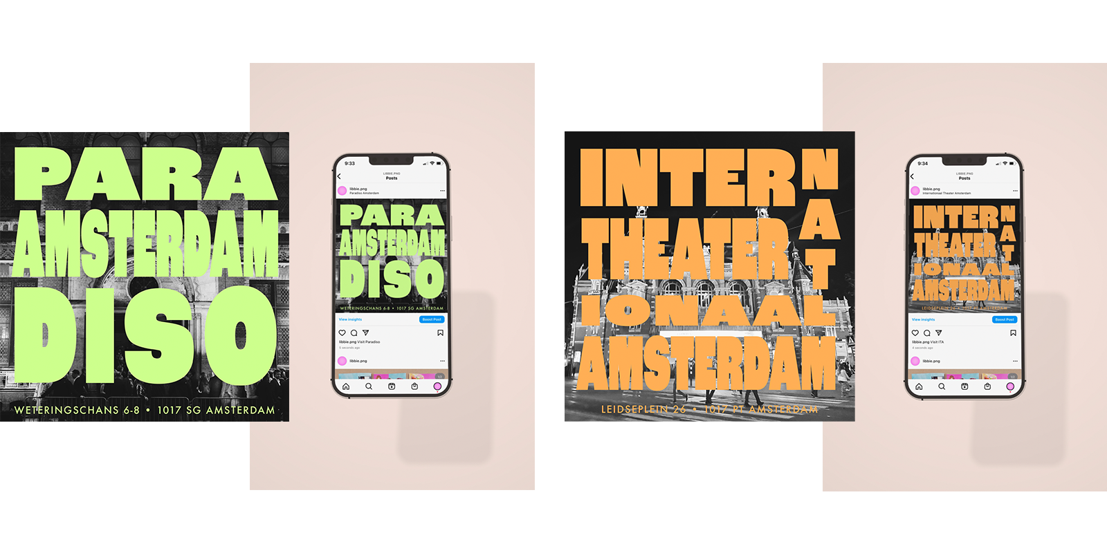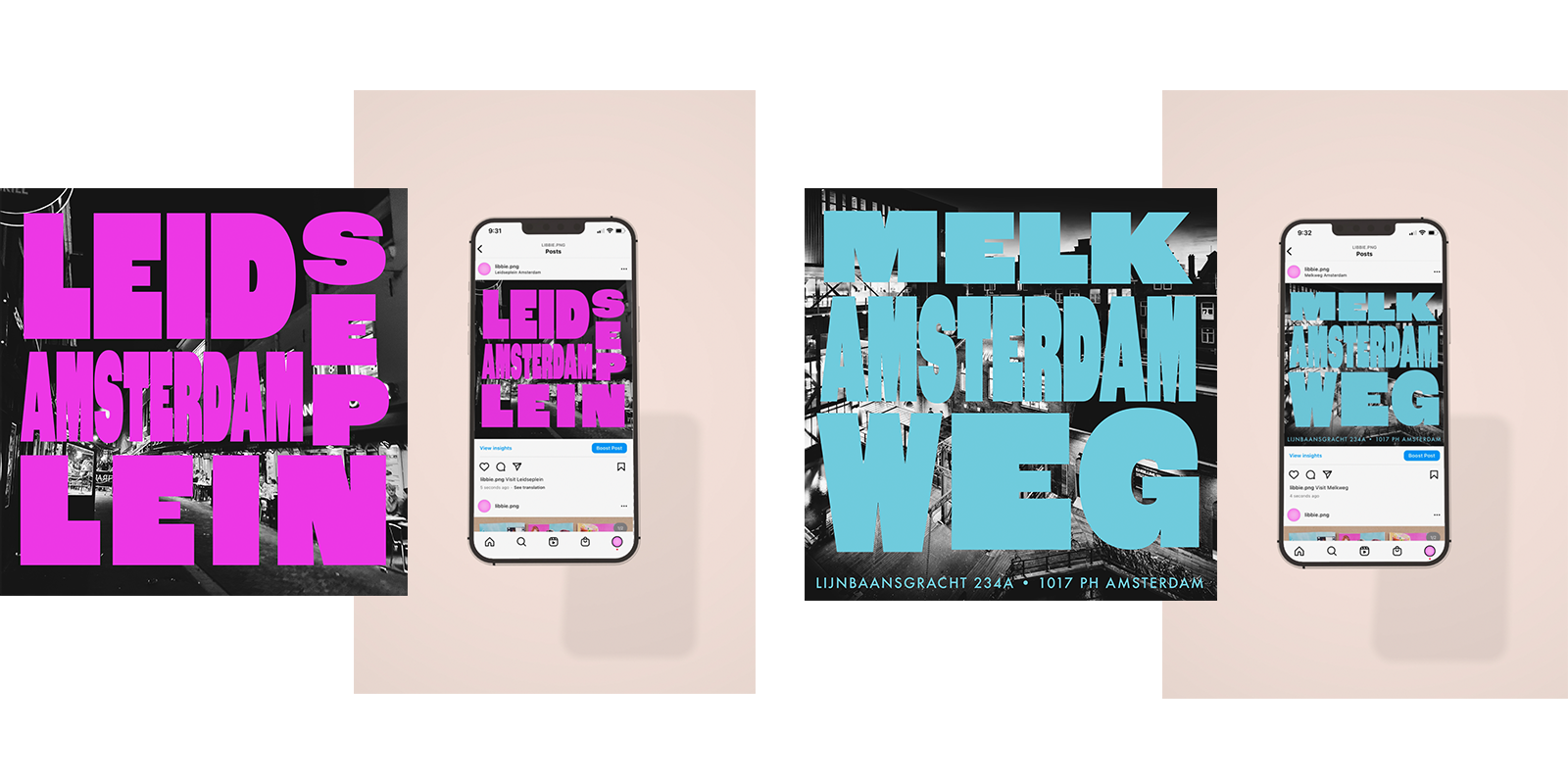 While studying abroad in Amsterdam, I was given an assignment for my GRPH 392 class to design and create a piece of my choice about an idea or topic that I explored while in Amsterdam. For my project, I chose to create a series of Instagram posts advertising Leidseplein, an entertainment and nightlife hub located in central Amsterdam. I chose this topic because I was fascinated with the energy and vibrancy of the neighborhood and wanted to learn more about the entertainment and music scene in Amsterdam. In addition to the neighborhood itself, I chose three specific entertainment venues in Leidseplein to focus on: Melkweg, Paradiso, and Internationaal Theater Amsterdam (ITA). I created these pieces using Adobe Illustrator.